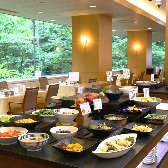 厳選素材を活かした信州自慢の味はもちろん、季節料理などもふんだんに登場します。また、健康に気遣ったお料理を提供したいと考え、「一汁三菜」という栄養バランスもメニューの特徴。皆様に健康になってもらいたいと、シェフが心を込めて作るお料理。お好きなものをお好きなだけ。メニュー日替わりで、連泊のお客様も食べ飽きることはありません。