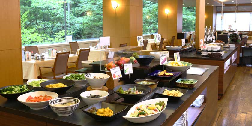 朝食は、四季折々の景色が美しいビュッフェダイニング渓泉で和洋ビュッフェスタイルをお楽しみいただきます。